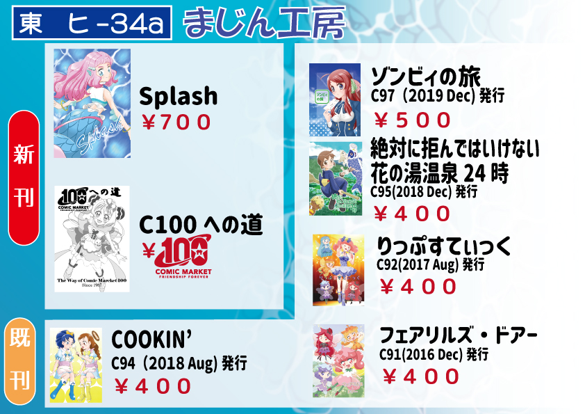 あなたのサークル「まじん工房」は、コミックマーケット100で「土曜日東地区 "ヒ " 34a」に配置されました!コミケWebカタログにてサークル情報ページ公開中です! webcatalog.circle.ms/Perma/Circle/1… #C100WebCatalog 昨年いっぱい描いたトロプリイラストの描き直しが主になります。つまり初めてのフルカラー!