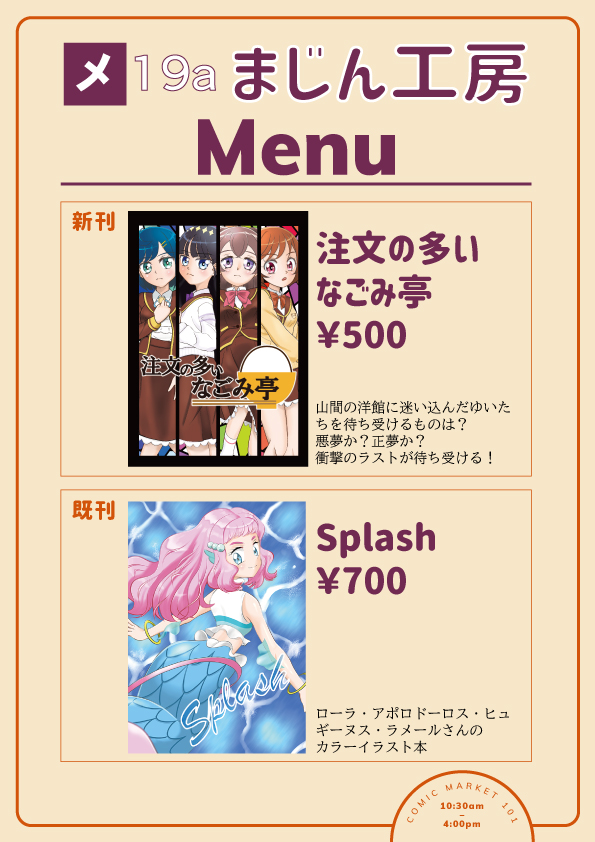 「金曜日東地区 "メ " 19a」webcatalog.circle.ms/Circle/1681350… #C101WebCatalog 頒布物はこの2点となります!よろしくお願いします。 #C101