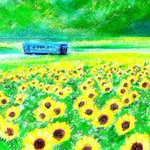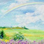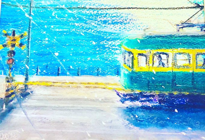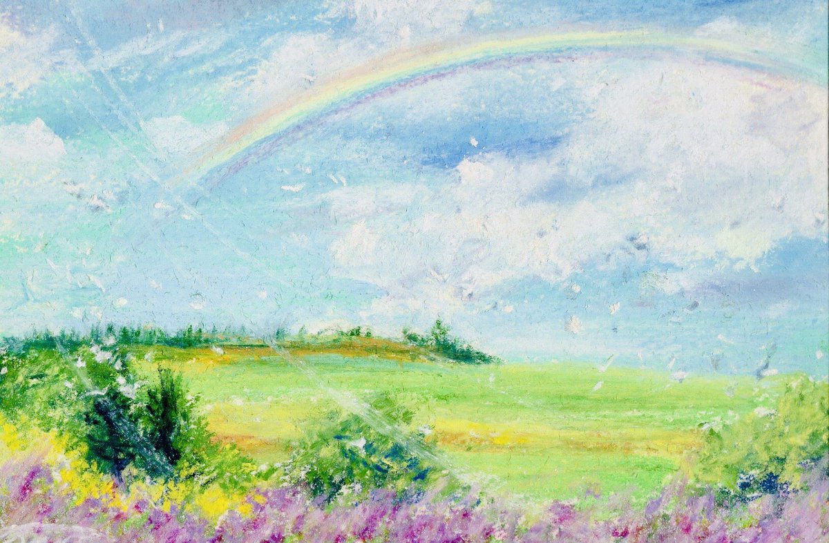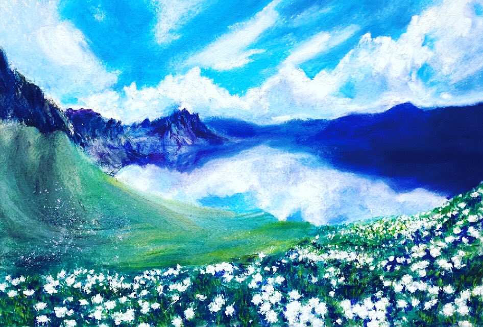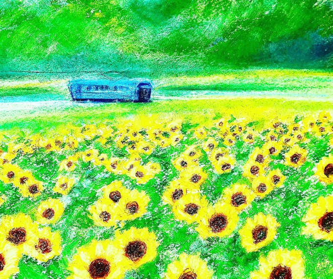 #みんなで楽しむTwitter展覧会 #今日はなんの日 #米の日 #アート #イラスト #art #ilustration #パステル画 8月18日→ハ十ハ→米 なんでしょうかね? 八十八繋がりで四国、高知県の物部川の風景です