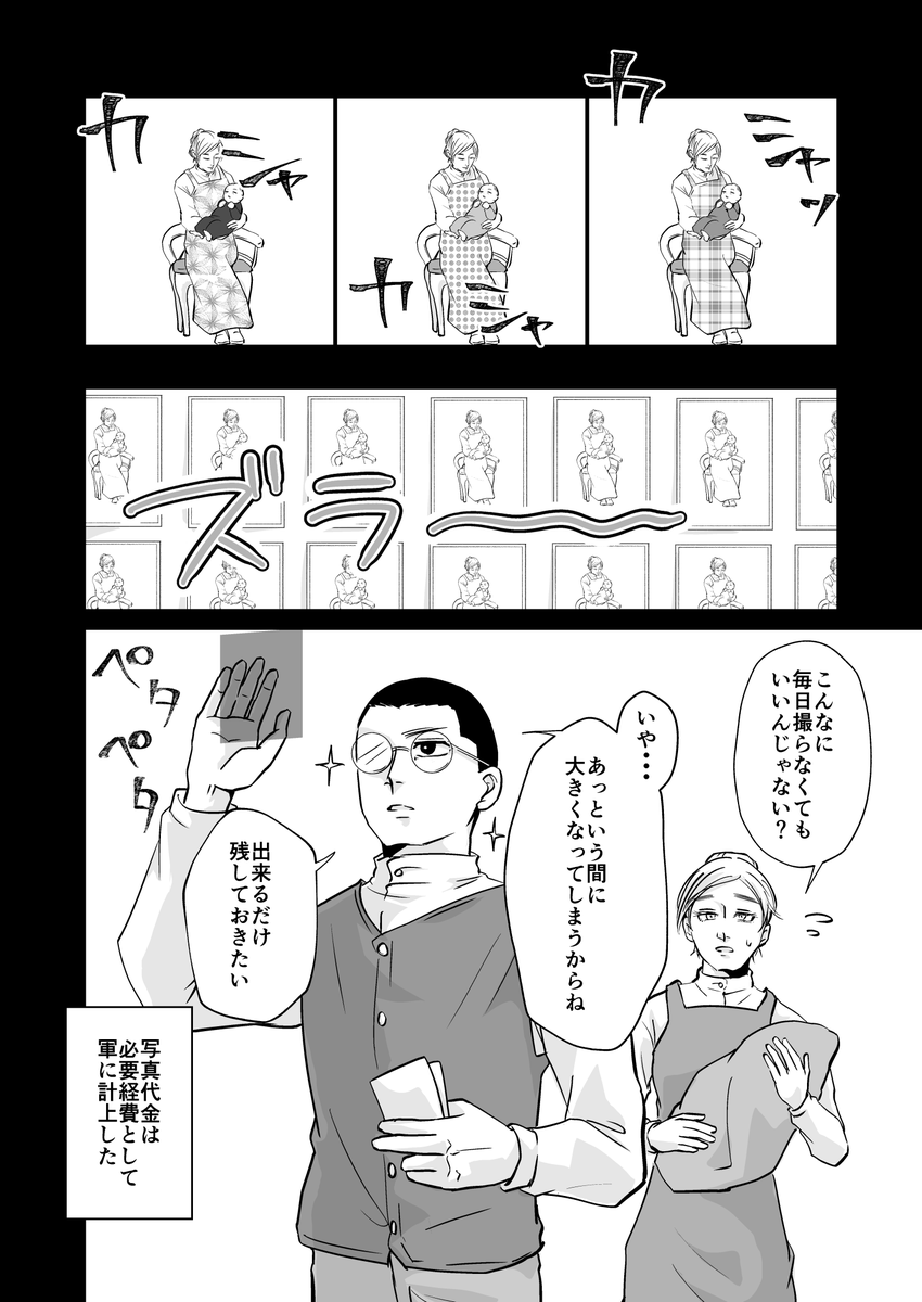 #ゴールデンカムイ版深夜の真剣お絵描き60分一本勝負 【お題】親子の絵 漫画1Pにつき60分です。(ネーム・文字入れ・3Dモデル配置除く) 3枚目だけちょっとオーバーしました。。。 長谷川さん親子描きたくなったので。後半シリアス