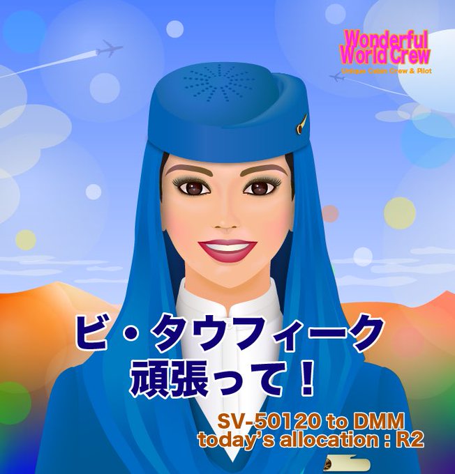 NFTアートでみんなを元気にしたい プロジェクト『Wonderful World Crew』 応援よろしくお願いします✈️❣️ 今日のNFTは サウジアラビア航空の制服を着た キング・ファハド国際空港行き便の CAのAzharちゃんを描きました #NFT #NFTartist #nftcollector #NFTjapan #NFTCommunity #NFTartists #イラスト