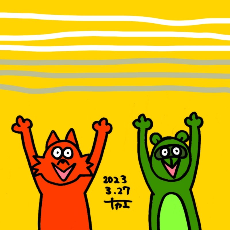 0 1 あーかいきつねとみどりのたーぬーきっ #絵 #イラスト 23/03/27 17:59