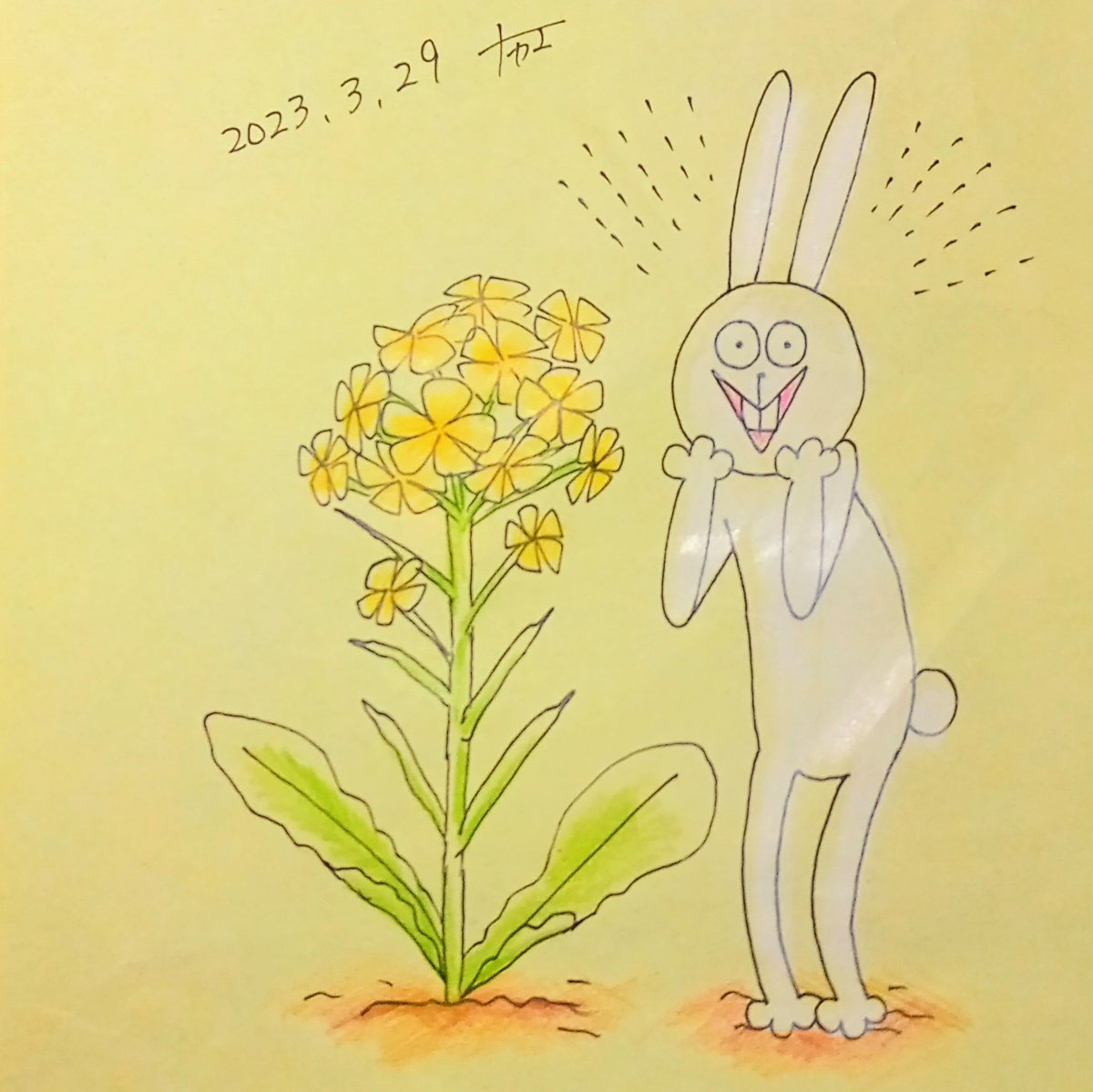 0 1 菜の花の匂いがすると「春だなぁ」と感じます。 #イラスト #絵 23/03/29 17:25