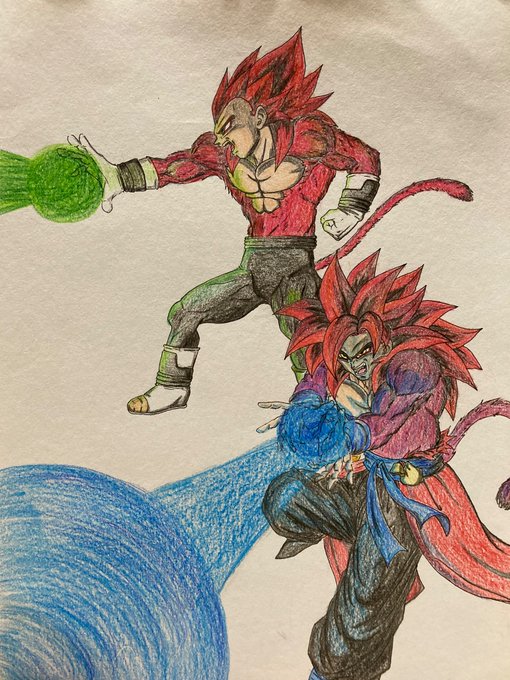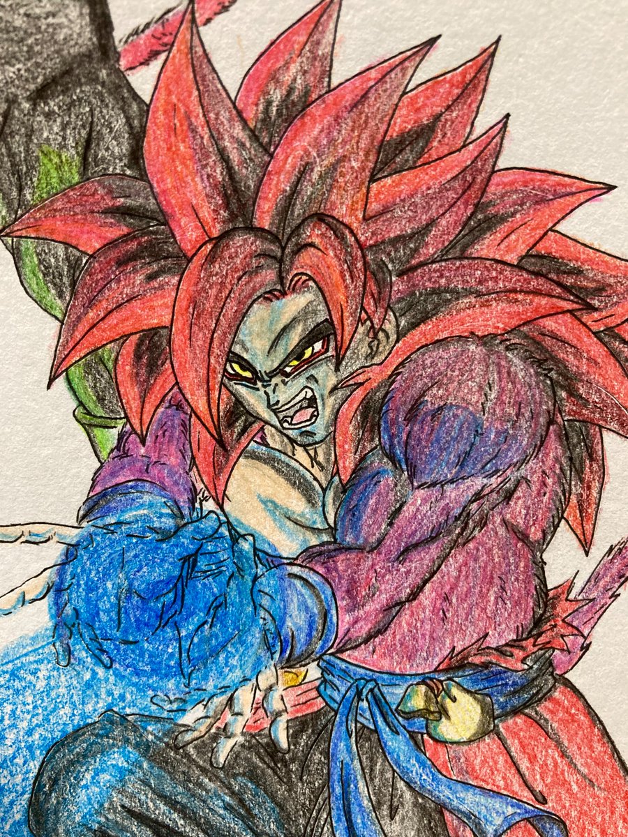 SDBH:BM3より 超フルパワーサイヤ人4限界突破を描く 塗りがおかしかったりするのはご勘弁 #イラスト #スーパードラゴンボールヒーローズ ど #ボールペン画 #色鉛筆
