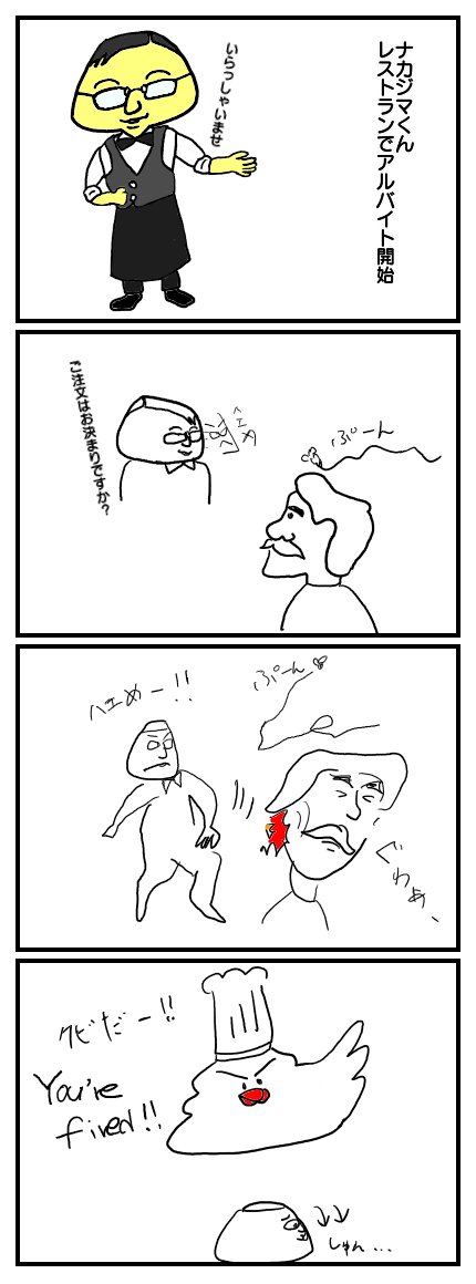 0 35 4コマ漫画「バイトナカジマくん(ボツ作品)」 #イラスト #4コマ漫画 #漫画 22/07/13 19:17