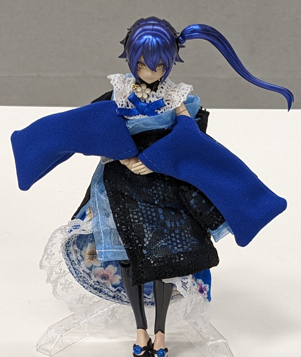 #メガミデバイス #メガミデバイスは自由だ メガミデバイス 皇巫スサノヲ蒼姫 完成です! 本体はほぼスサノヲ蒼炎からあまり手を加えず、足や髪に追加パーツにいのう商店さんで購入した洋服を使用しました 初のメガミデバイスの改造品ですが、無事に完成出来てよかったです