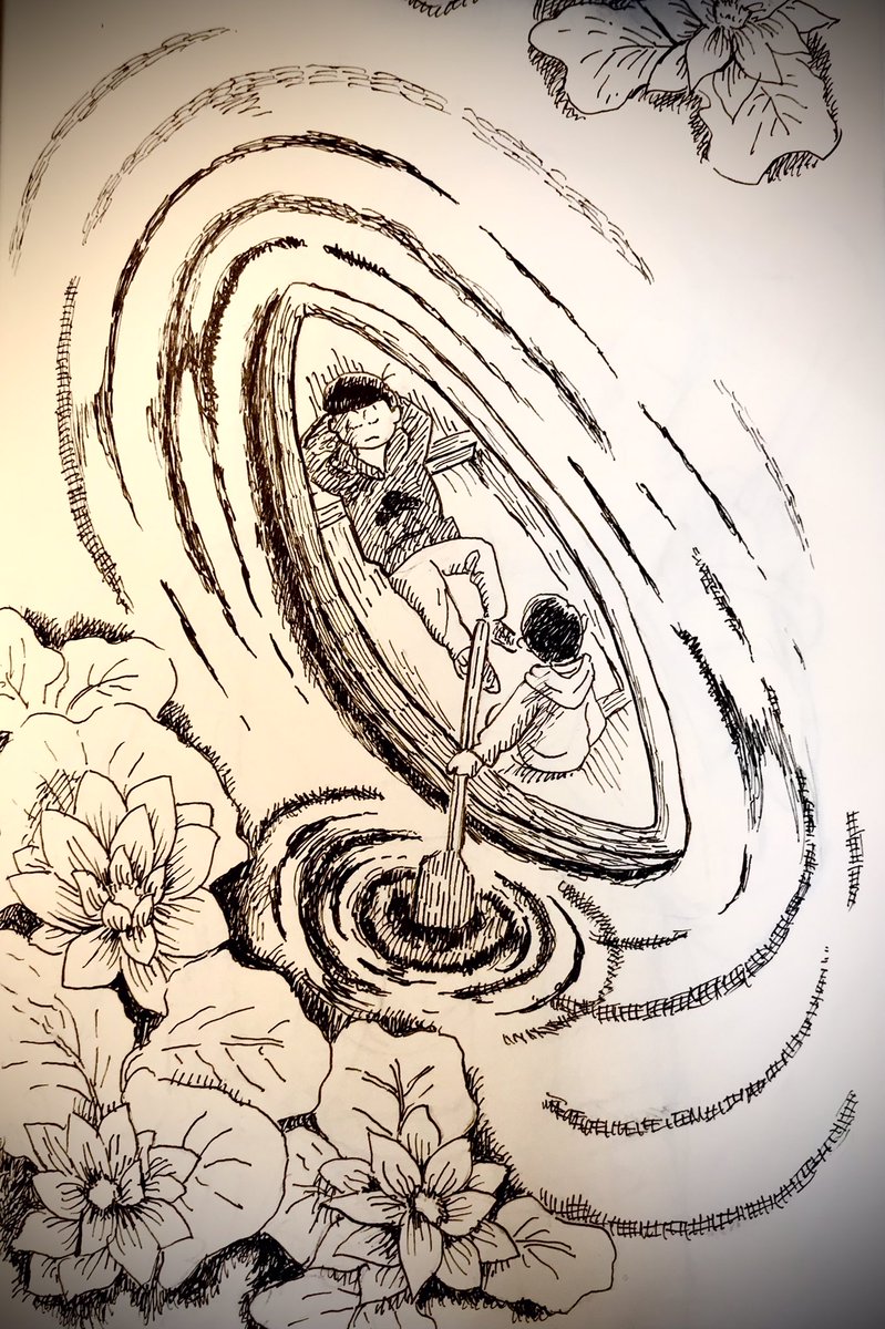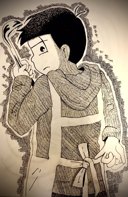 7 44 #インク松月間 #インク松2021 結び目 1日遅れ。のっそりアップ。 むつごの中で料理一番できるのは一松のイメージ。 21/10/05 06:32