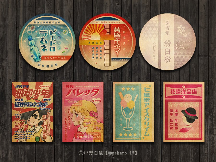 #私はこんな仕事がしたい 普段はイラストの仕事が多いのですがグッズ・フライヤー等のデザイン系のお仕事もしてみたいです! 架空の商品や商店をイメージしたレトロなアイテムを作っています📺⚡️