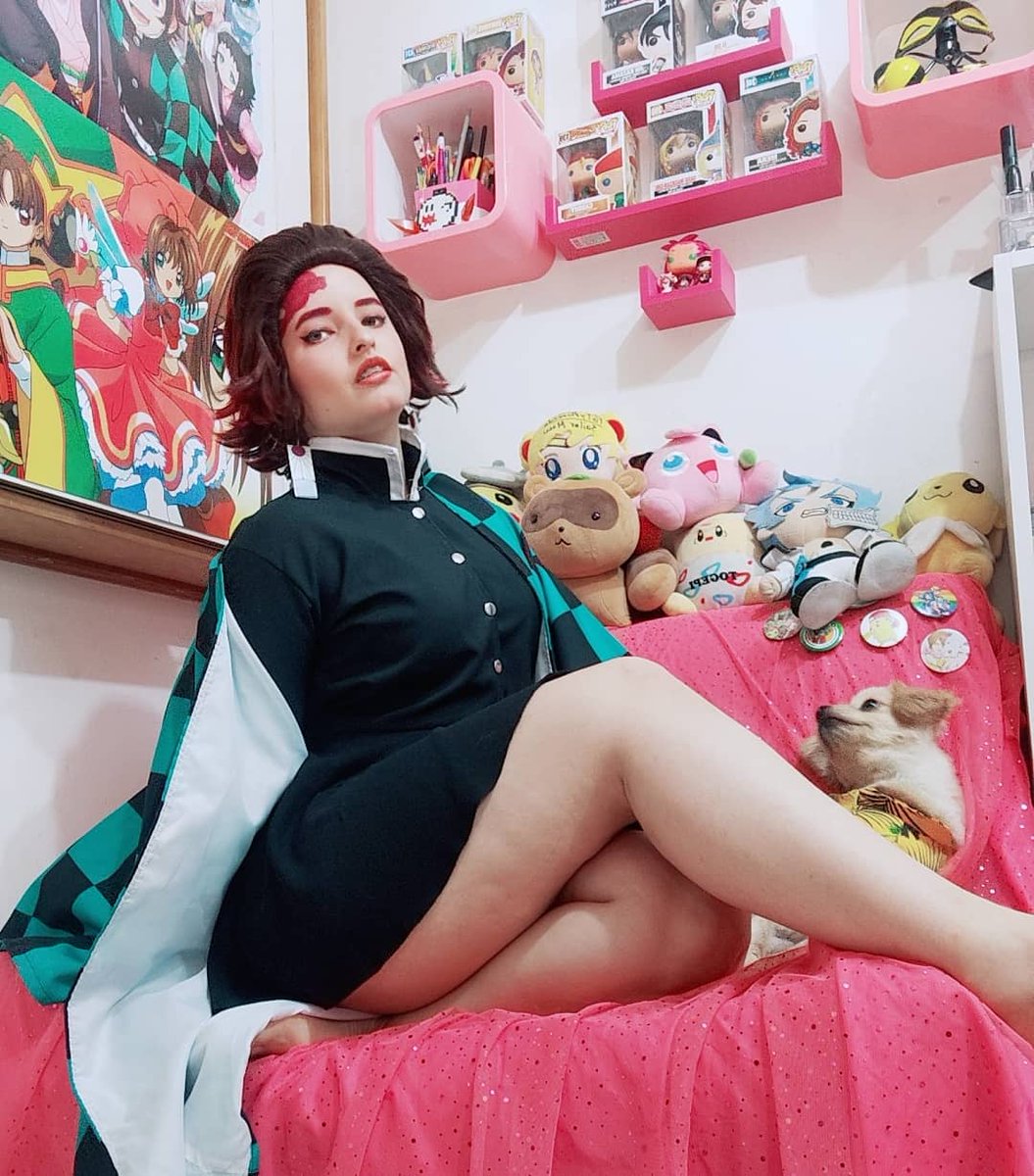 La Tanjiro sexy existe y está de vaga en su casa haciendo fotos mientras está en meet con amigos xdddd Ya sé que faltan cositas pero es costest nomás xd . . . Traje: Yo misma . . . . #tanjiro #kimetsunoyaiba #cosplay #sexycosplay #legs #nezuko #shimobu #zenitsu #demonslayer