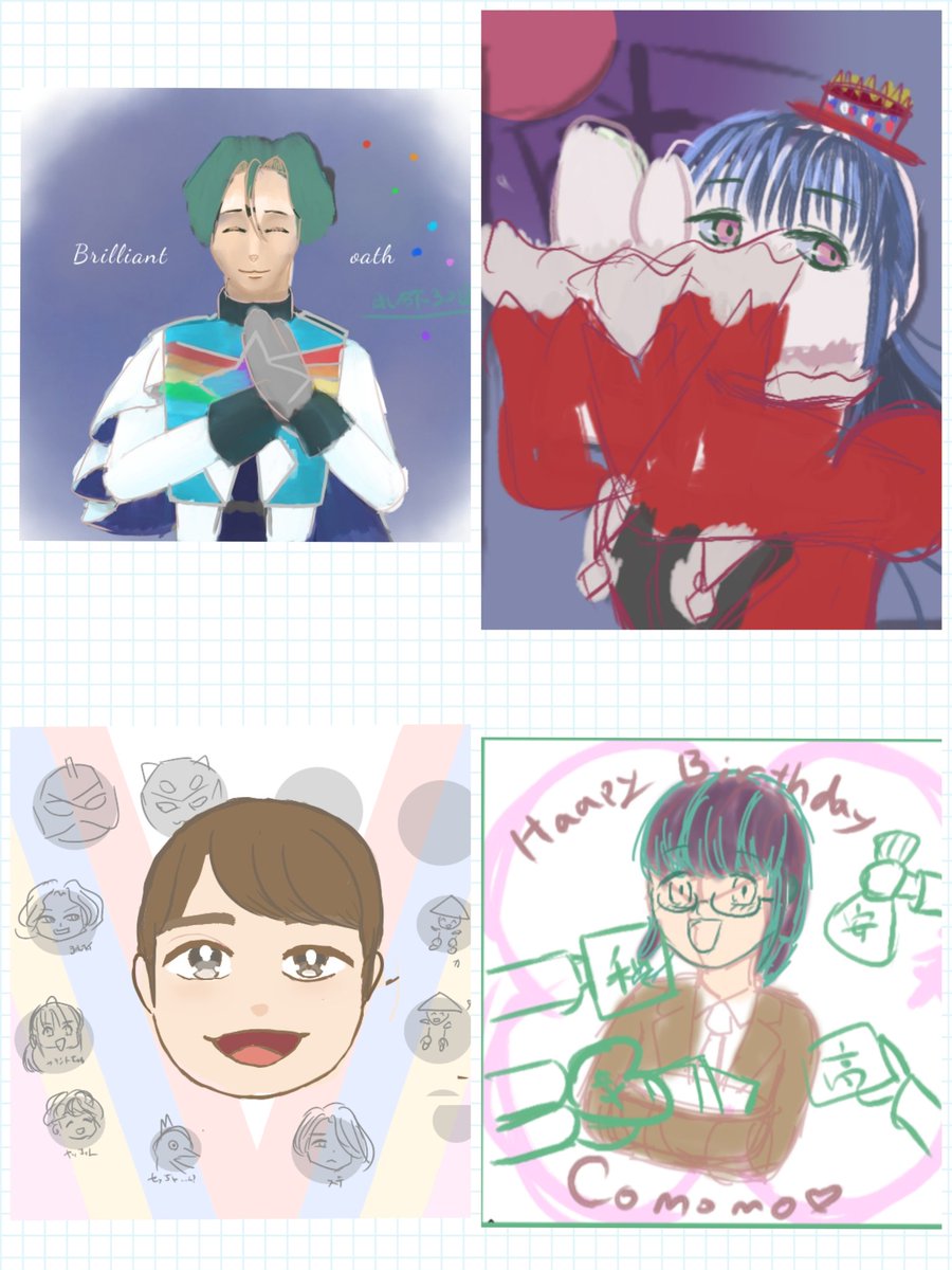 #今月描いた絵を晒そう 2022.03 #絵描きさんと繋がりたい 2月は描けなかったので久しぶり感! ・推し誕祝った ・フォロワーさん宅の子描いてシールにした ・過去らくがきをリメイク中 ・推し祝絵間に合ってない!