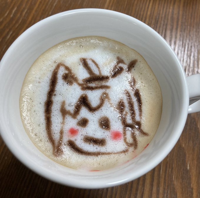 昨日ホワイトデーだったので ラテアートに挑戦しました。 フブキちゃんとすこん部 初めてだったのでむずかしい… 道具揃えてリベンジします! #絵フブキ #中山つくものおえかき