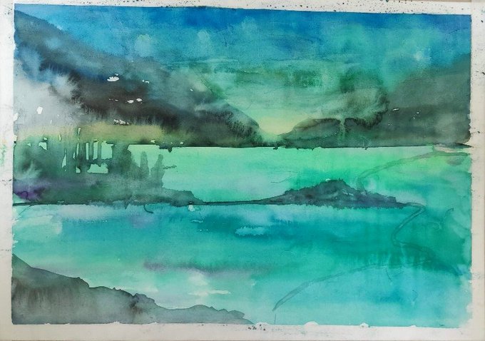 最近、雨の日も多いので穏やか風景画を上げます😅 皆様、体調を崩さないようにお過ごし下さいませ〜♨ #絵描きさんと繋がりたい #クリエイターと繋がりたい #絵画 #水彩画 #美術 #画家 #アート #作品 #art #drawing #watercolorpainting