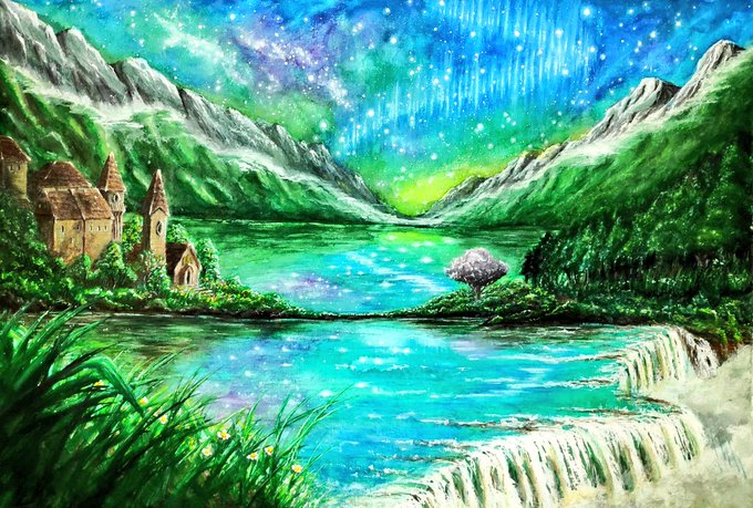 こんばんわ😊 夜分遅くに夜の絵を上げててみました🤗一応、題名は 星の宴 にしてみようと思いました😅 #絵描きさんと繋がりたい #クリエイターと繋がりたい #絵画 #水彩画 #美術 #画家 #アート #作品 #art #星空 #drawing #watercolorpainting