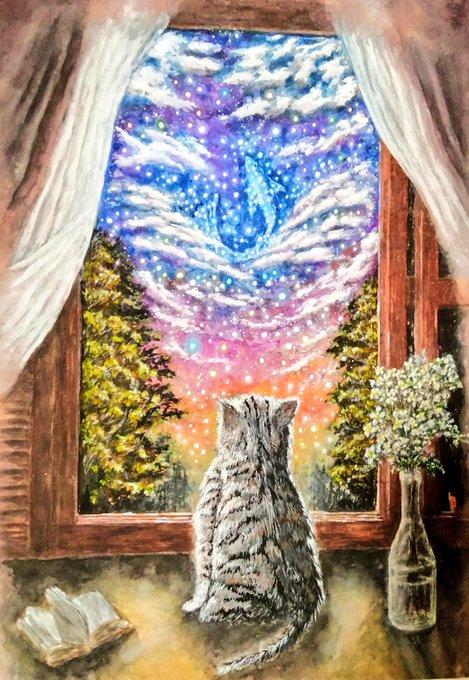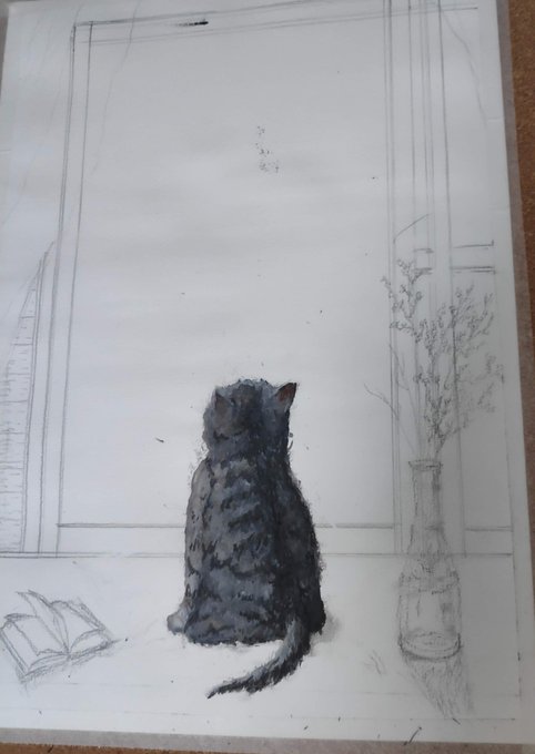 こんにちは🌞 猫の絵の制作過程です😊 無性に猫が描きたくなってしまい、塗る順番を間違えました〜😅 今、修整中です💦 #絵描きさんと繋がりたい #クリエイターと繋がりたい #絵画 #水彩画 #美術 #画家 #アート #作品 #art #星空 #drawing #watercolorpainting