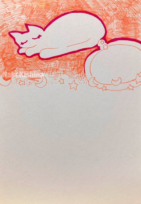 すやぁ… #猫 #ポストカード #ペン画 #一発描き