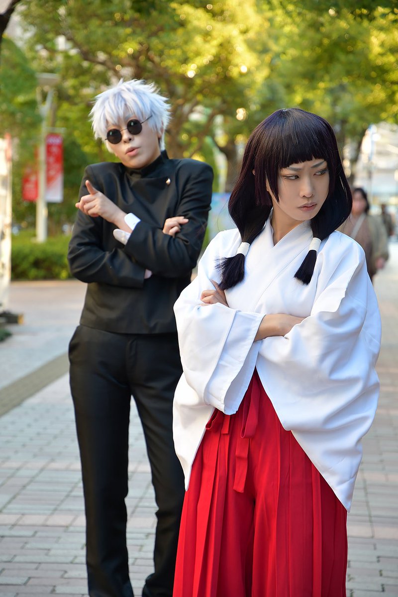 Cosplay 呪術廻戦 五条悟 キユウ @kiyu_1221 庵歌姫 おが @aesyk410 Photo : Ichito 2期おめでとうございます👏楽しみなので撮らせてもらった呪専の五条と歌姫の写真アップ🥳 #トピレックコスプレ2021 (タグは撮影会場)
