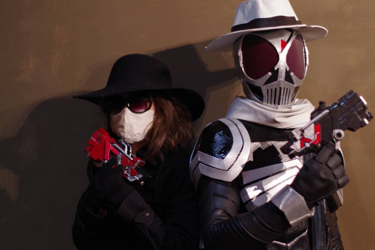 仮面ライダーW併せ シュラウドのコスして来ました。 仮面ライダースカル @KingSB691 カメラ @newHERO_sentae #風都探偵 #仮面ライダー #あめいず #ルシェルフォト