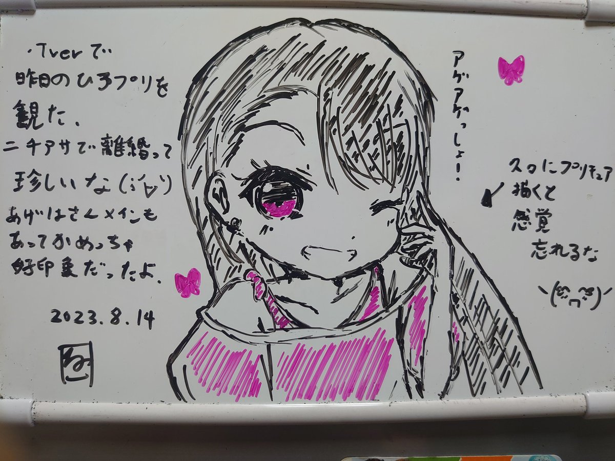 1 2 そりゃたまには描きますよの #プリキュア感想絵 …あげはさんも初描き&ホワイトボードでの落書きなのでヘロヘロ過ぎるのゴメン; #precure 23/08/14 20:41