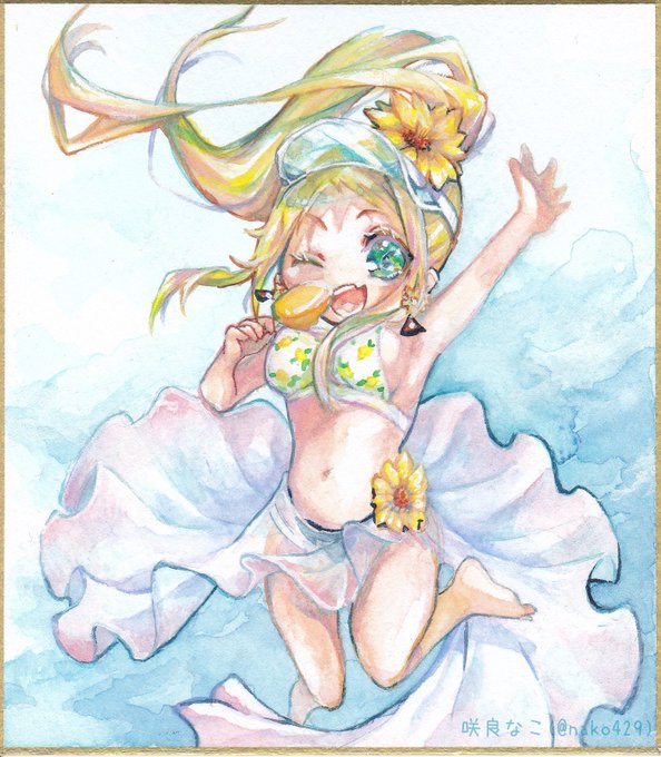 2 9 夏の擬人化 コナツ #透明水彩 #watercolor #水着 23/03/21 15:20