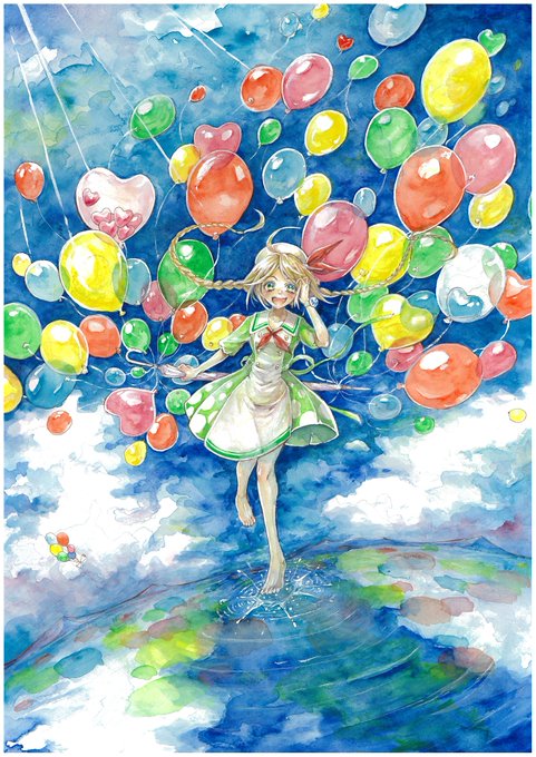 1 7 GW!カラフルな空模様をお届けします。 個展「少女」のメインビジュアルでした😊 #創作 #透明水彩 #GWはフォロワーさんが増えるらしい 23/04/29 16:12