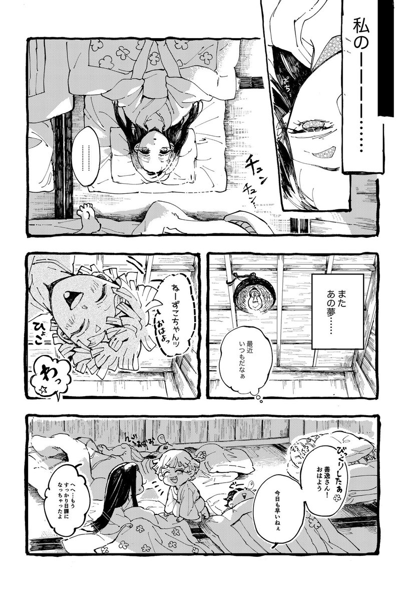 突然ですがぜんねず本出します〜 11/3 CC福岡57 日輪奇譚25にて頒布予定です。不備がなければ…。 B5/全年齢/40p 値段未定 🎀ちゃんの中で、箱を守ってくれた男の子と⚡️の像が重なるまでのお話です。 表紙まだできてないので本文のサンプルだけ先に上げます