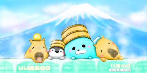 24 115 【毎日投稿*今日は何の日?】 11月26日はいい風呂の日♪ みんなで、ぽかぽか♨️✨ #いい風呂の日 #イラスト 22/11/26 12:03