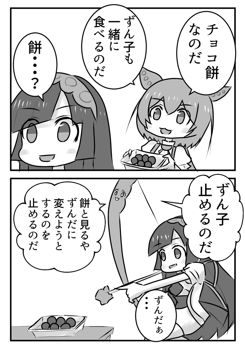 ずんだもんとチョコ餅2コマ #ずんだもん #東北ずん子