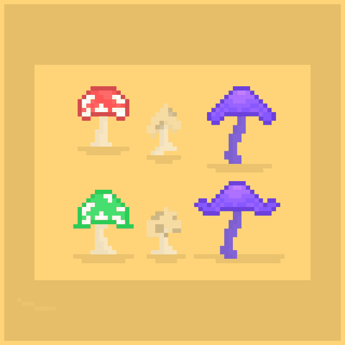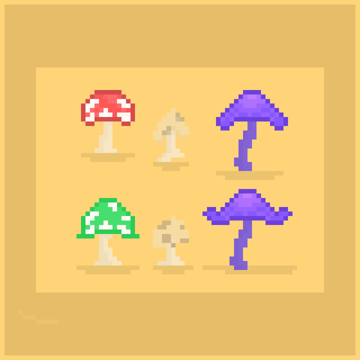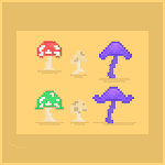 🇺🇸a set off fungis for @Pixel_Dailies 🇧🇷 alguns fungos para o #pixeldailies 🔁+❤ =😁 #pixelart #pixelartist #pixelartwork #digitalart #ドット絵