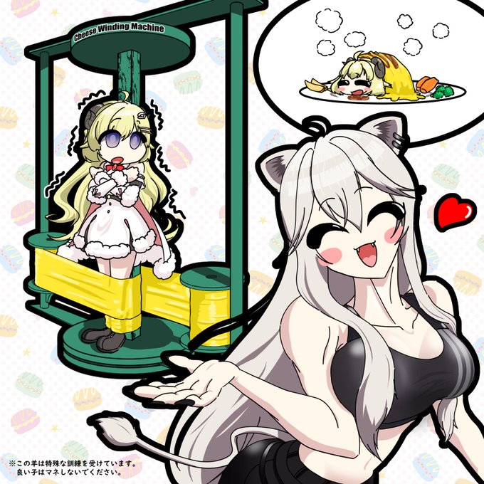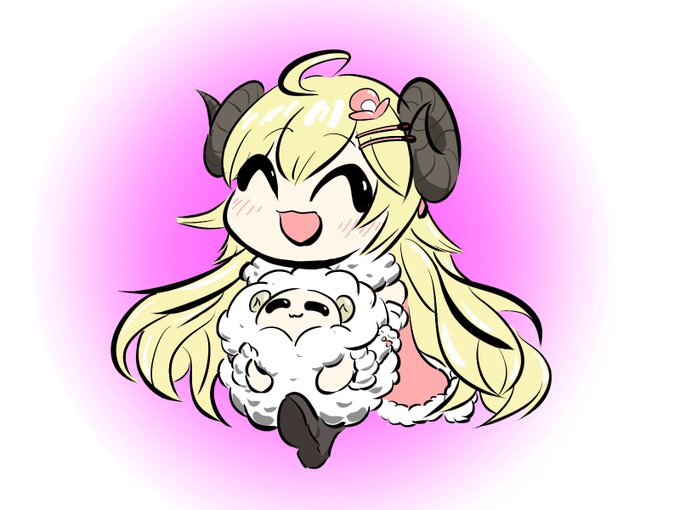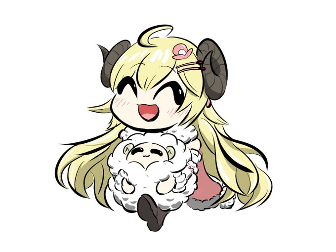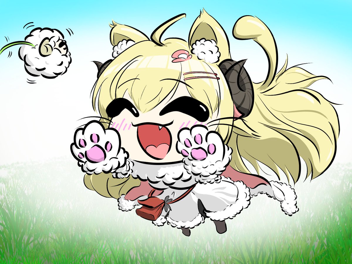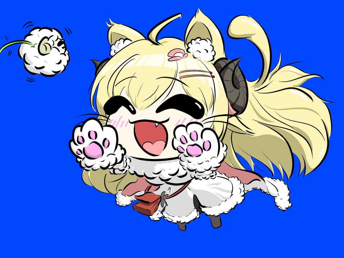 193 1534 Watame, Fauna, and, Baelz in Cat cafe! 3人の猫カフェを想像してほっこり🐏🌿🎲 #つのまきあーと #FineFaunart #BaelzBrush 23/01/25 22:50