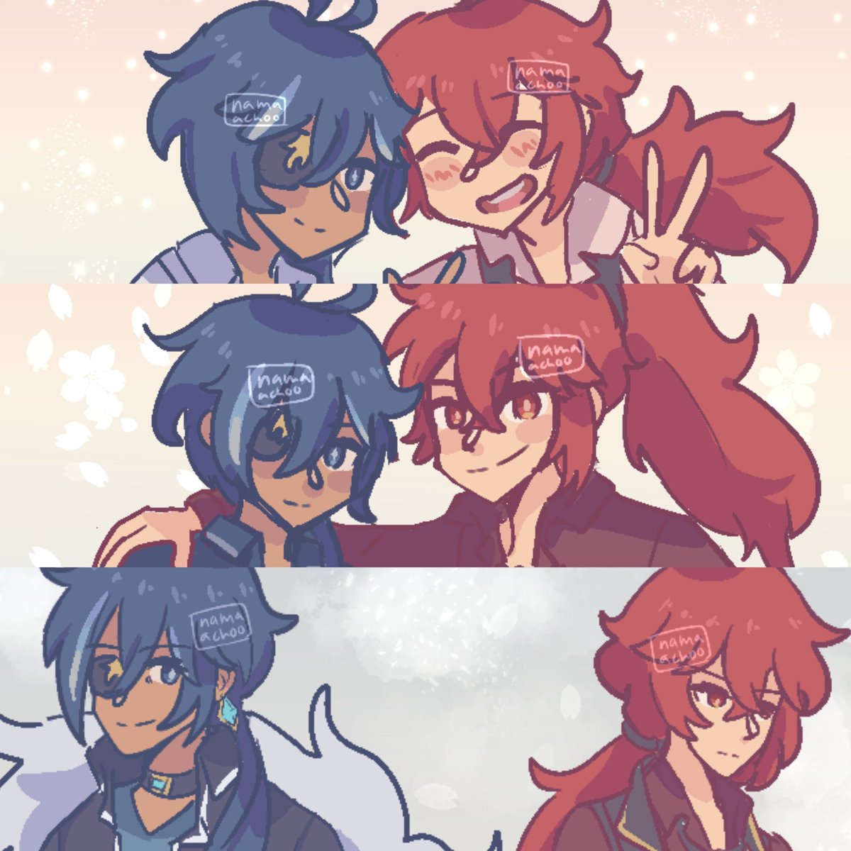 Illustrated Kaeya and Diluc's relation in my AU! :D Childhood and Teen years: Best friends Present: Distant #genshinimpact #kaeya #diluc #原神 #genshinimpactfanart #alternativeuniverse