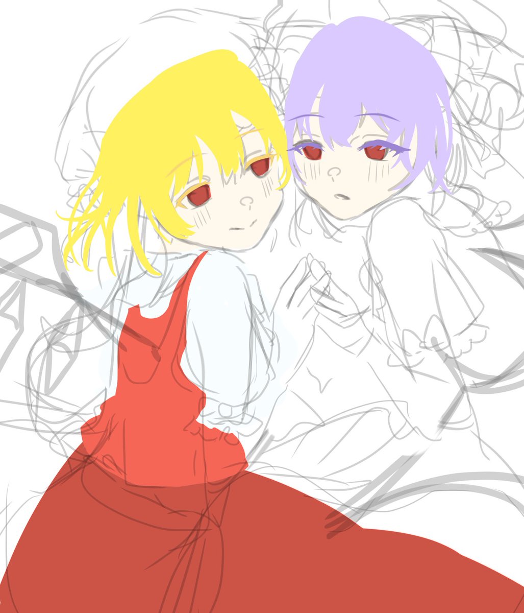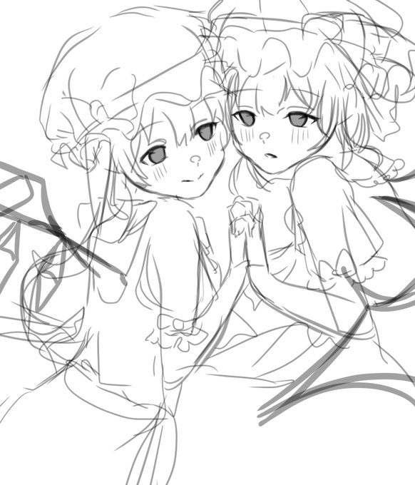 とりあえず寝ますおやすみなさい💤! #イラスト #途中経過 #秋の創作クラスターフォロー祭り #ilustration #東方Project #フランドール・スカーレット #レミリア・スカーレット