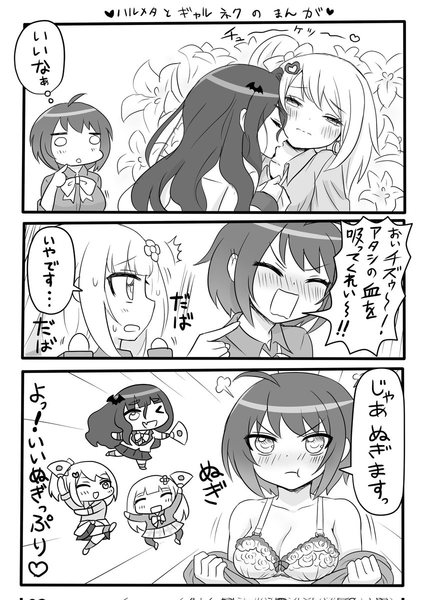 コミティアありがとうございました☺️ カコベンさんのフリーペーパーに描かせてもらったハルメタルドールズとギャルとネクラの吸血関係の漫画💕🎸🦇
