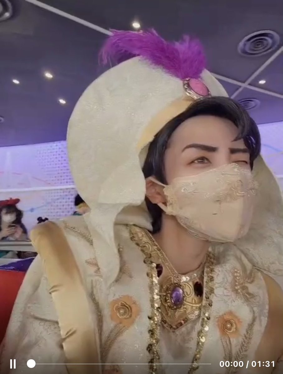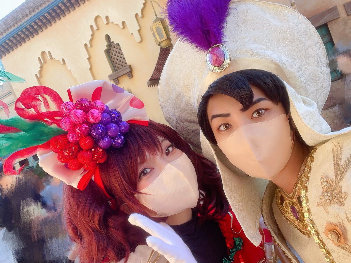 個性が出るウィンク😉⭐️エリックのウィンクめちゃくちゃ可愛い🥹💕 私は眉毛上げないように必死笑 あとキャストさんに「サイン練習したんですよ〜!」ってシール貰った!このシールこの歳で貰えるなんて😂✨ #Dハロ仮装2022 #Dハロ仮装