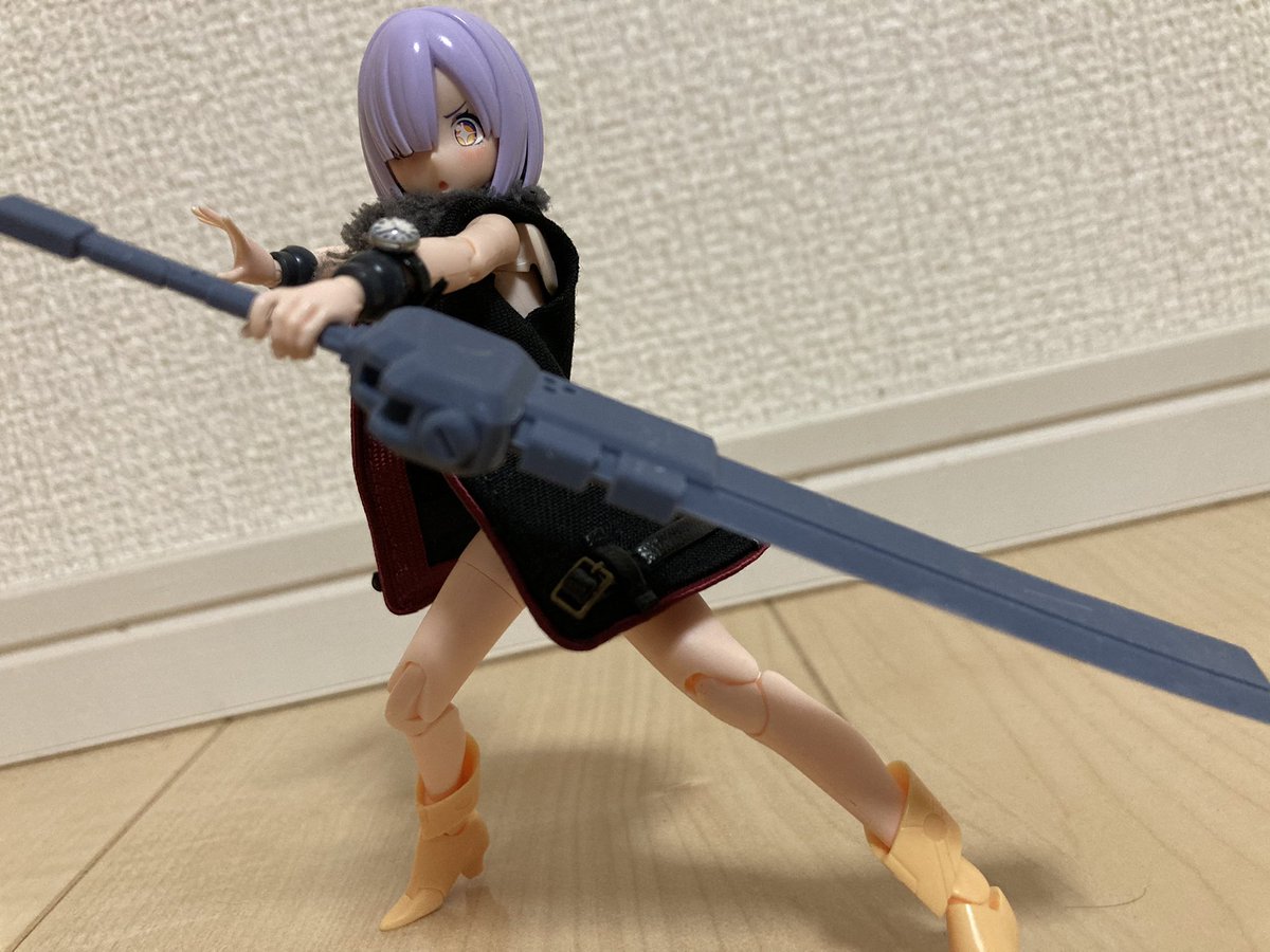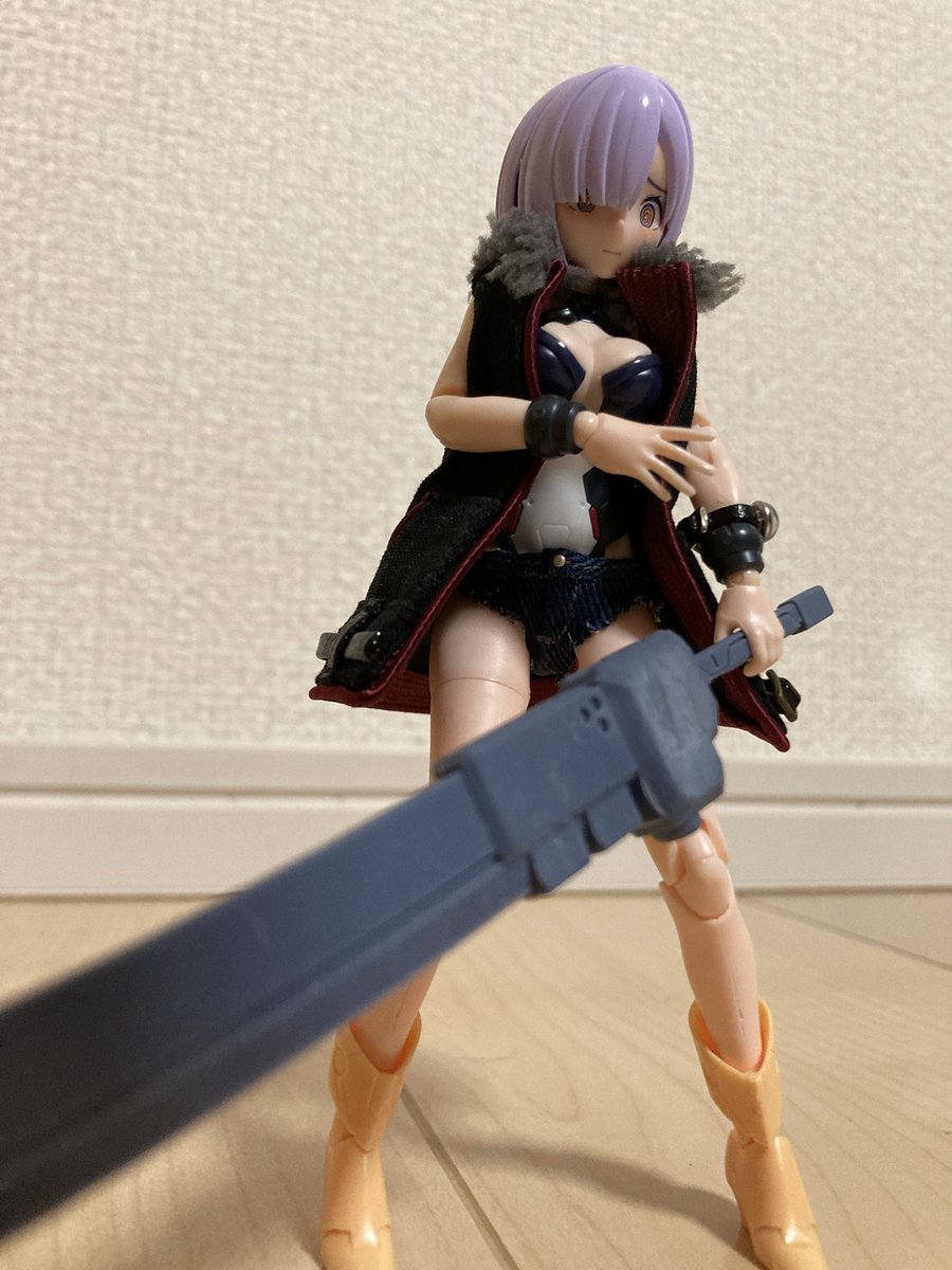 今日(てか昨日)手に入れたアイテムをエクスキューショナーに装備! 見た目の関係で武器の鬼潜りは刀身のみ😫 バウンティハンターみたいな感じに纏まって良き良き😎やっぱジャケットカッコいい! 刀身に手首が負けそうだけど頑張れキューさん!!w #メガミデバイス #エクスキューショナー