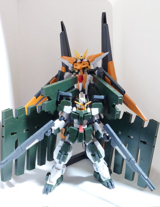 昔作ったゲイレールカスタム、支援機とドッキングしたら火力が上がる。 4本足に出来て足裏からアンカーボルトがでる設定で強力な砲撃をするってかんじですね。 #ガンプラ #世界で唯一無二の自分だけの作品をさらせ