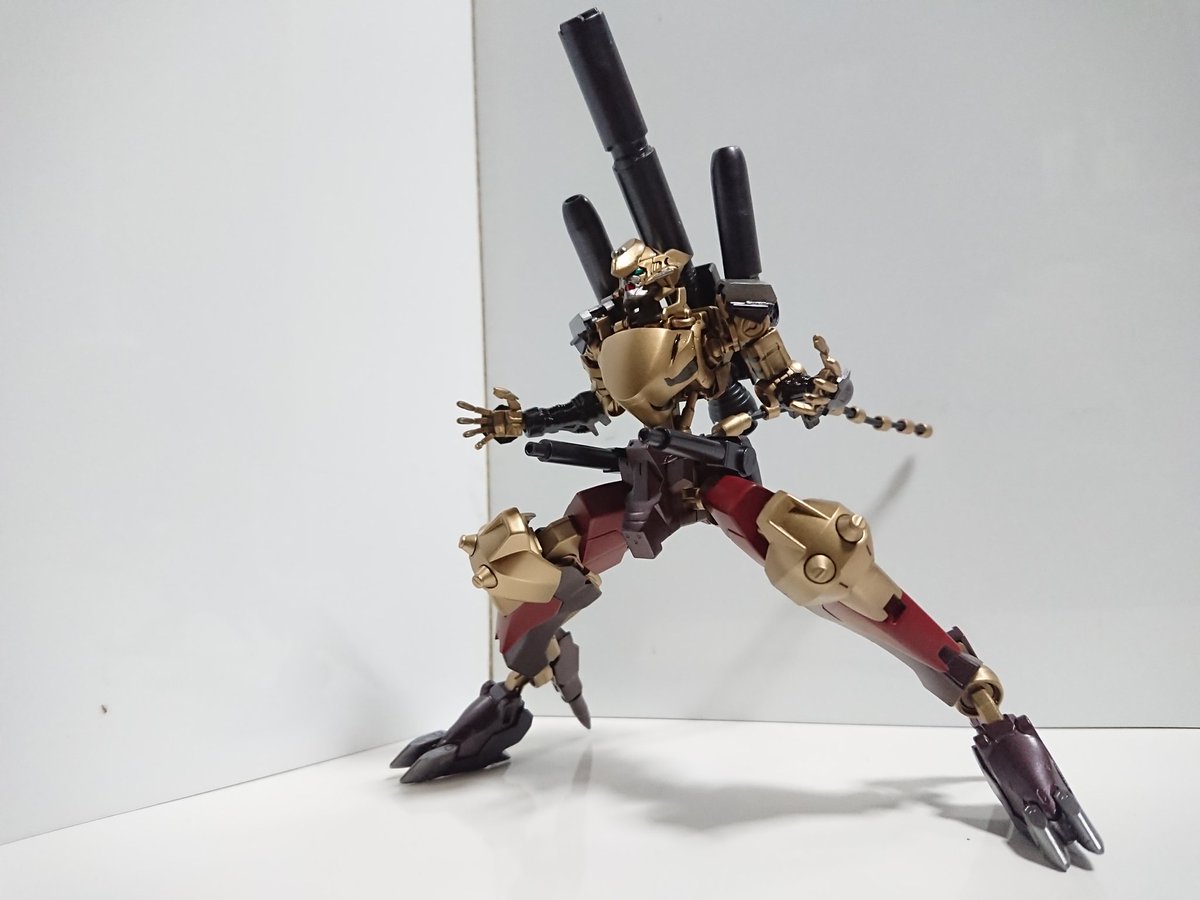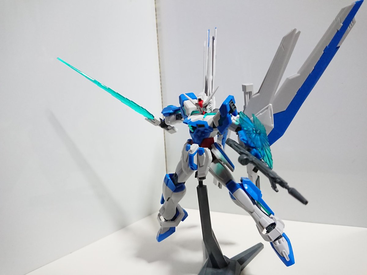 #ガンダムブレイカーバトローグ #ガンプラ ガンダムヘリオス完成。 色合いとクリアパーツが綺麗で関節の一部にデスティニーが使われているので可動は良好。 武装も多くは動かしていても楽しいです。 不満はビームシールドが一枚しか入っていないのと背中が重すぎること。