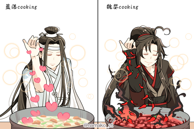 魏嬰(辛党)と藍湛(甘党)の組み合わせだったらという想像図 twitter.com/namako_zt/stat…