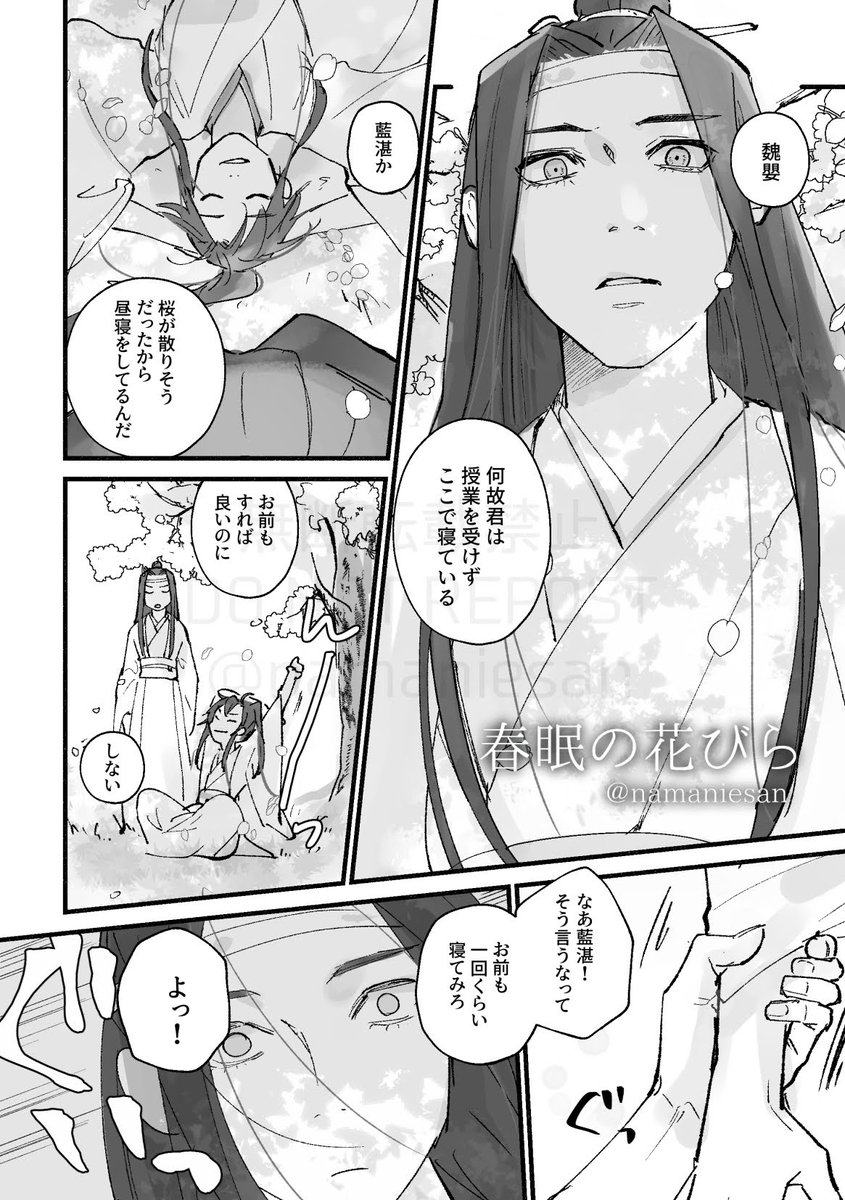 653 4105 「春眠の花びら」(4/6) #忘羨 #魔道祖師 忘羨オンリーで載した漫画です。当日は見て下さったりDLして下さって有難うございます🌸✨ 22/04/24 18:16