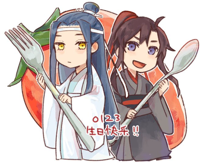 7 44 含光君をお祝いするケーキのためにイラストを描かせていただきました🎂✨ ちょっとケーキの魏嬰ちゃんは涎を垂らしてしまいましたが、美味しくいただきました😋 23/01/28 23:03