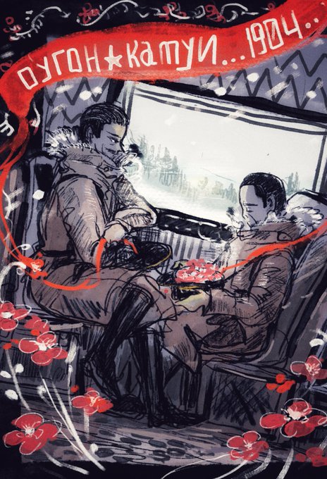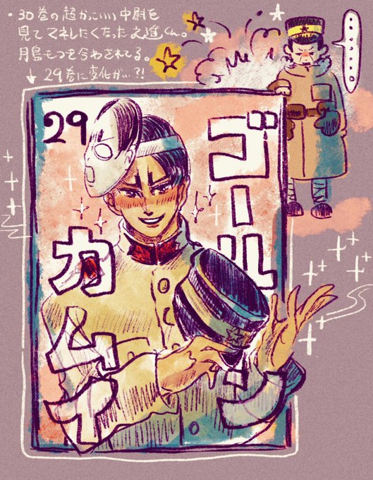 お題 単行本表紙風に推しを描く …「単行本表紙風の推しになる」 軍曹巻き込んで💥30巻の超カッコいい鶴見中尉になりきって29巻をやり直したくなる之進くんです🎏 (憧れはまだビニョウに有るといいなぁと思いつつ) #ゴールデンカムイ版深夜の真剣お絵描き60分一本勝負