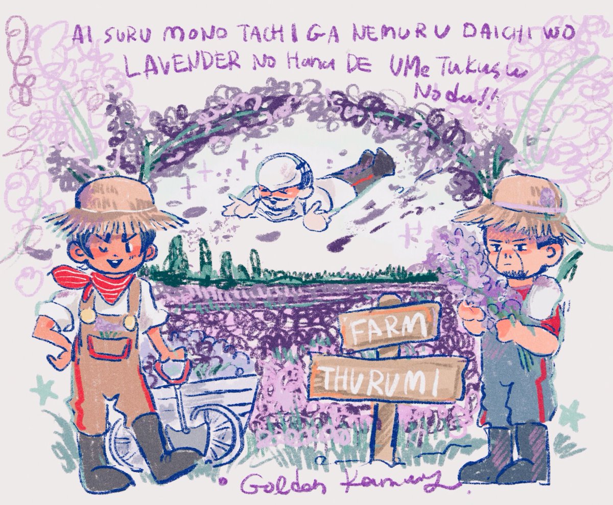 お題【それはまた別のお話】 愛する者たちが眠る大地を ラベンダーの花で埋め尽くすのだ!! …と北の大地でファーム鶴見を経営しちゃう師団(どんな話だ!?) #ゴールデンカムイ版深夜の真剣お絵描き60分一本勝負