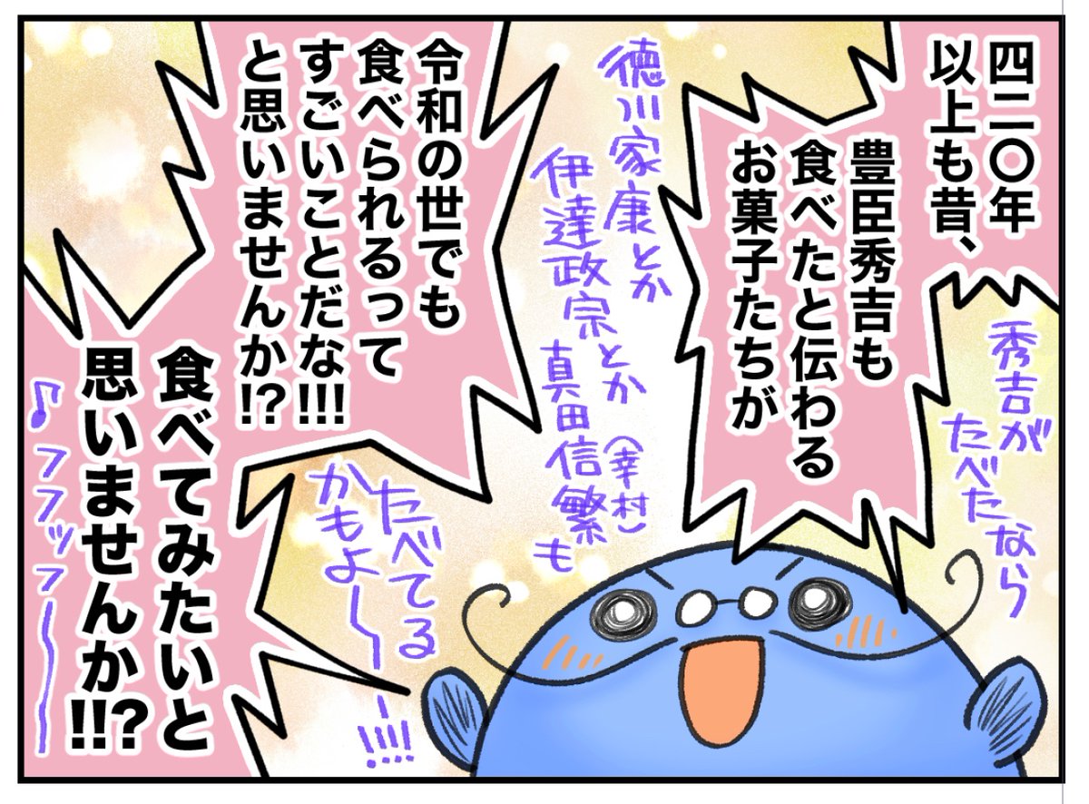 『太閤さんのおやつ箱』(A5/32p/オールカラー) 夏コミ新刊。豊臣秀吉ゆかりの(今でも買って食べられる)和菓子8選+α…をイラストとエピソード漫画でご紹介! 今回、評論情報と創作歴史が隣接配置なので、タグ参加失礼します!この後、通販予約URLをつなげてツイートします。 #C102飲食新刊まとめ