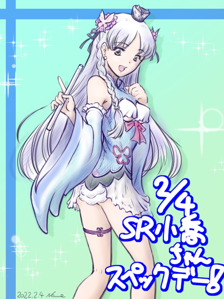 本日2/4はSR小喬ちゃんのスペックデー('ω')g どうせなので姉様(SR大喬さん)のポーズを真似っこしてる感じで。 実は数ある槍兵の中で迎撃1位だったり。「やぁー!」の掛け声が可愛いTony版小喬さんなのでした。 #三国志大戦イラスト描いてみた