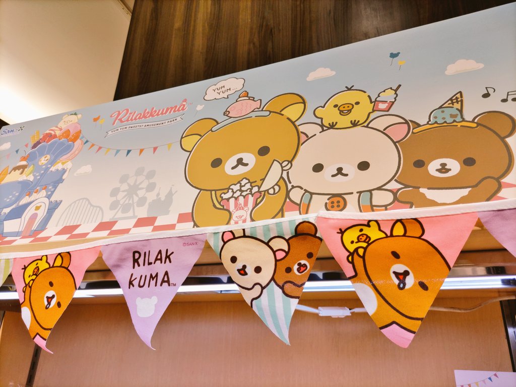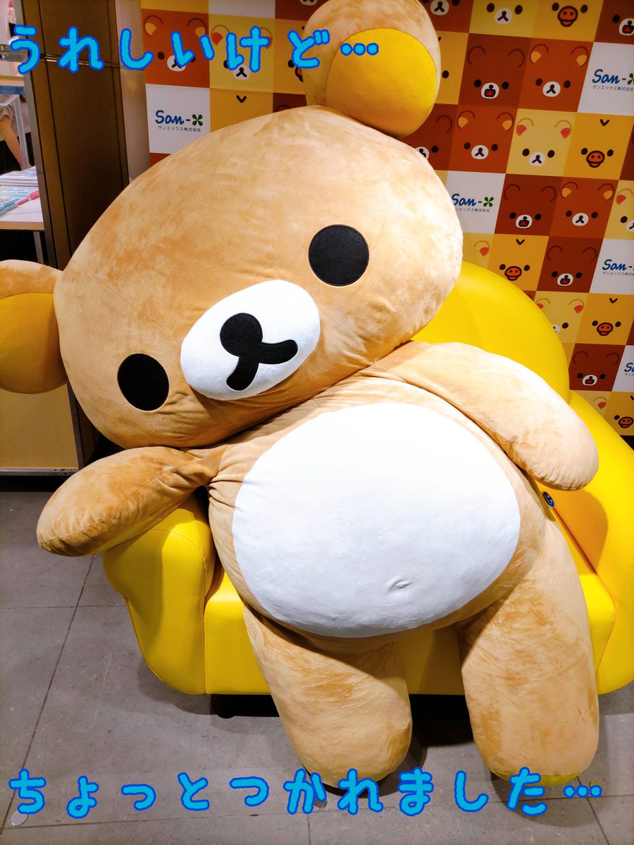 我らがリラさんのコーナー、今回はネトフリのゆうえんちがメインかな?でっかいリラくんもどっかりご健在ー ちっちゃい子に抱き着かれたり凄い人気でした✨✨✨皆に可愛がって貰って疲れましたーとだららんとしてたのをお店の方が抱き上げて直してくれた😆良かったね、リラくん #くまフェス