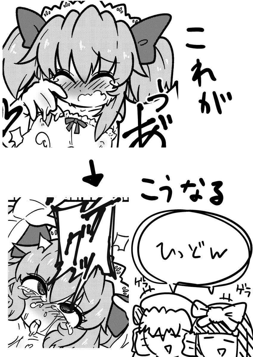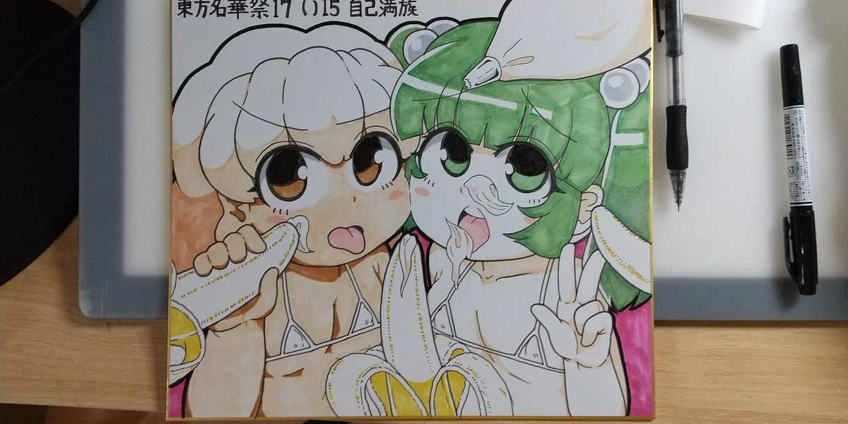 22 48 あとスケブで描かせていただいたも小鈴ちゃん…😊 二枚目の方は好きなキャラでとのことだったのでキスメちゃん描きましたァ 22/07/04 08:31