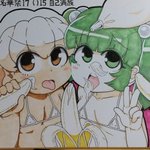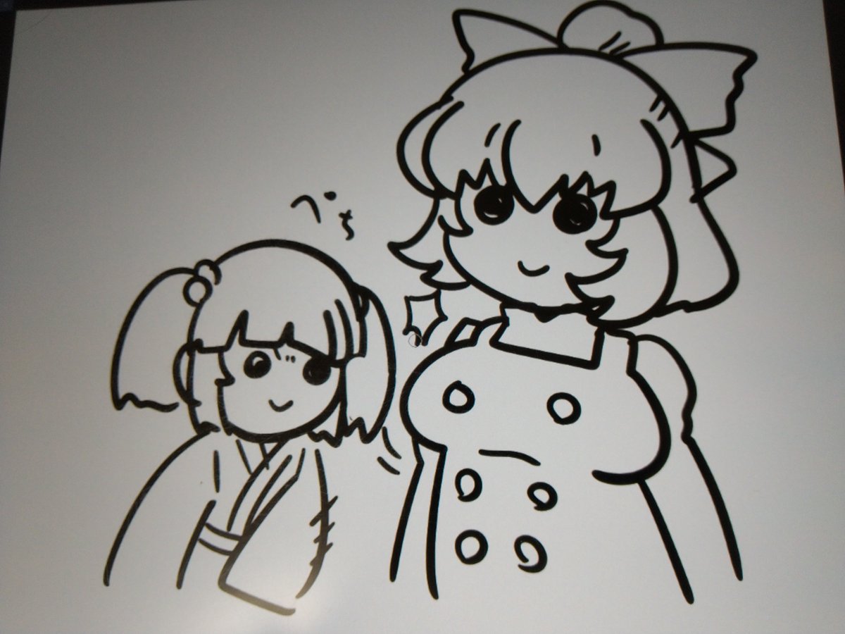 あとスケブで描かせていただいたも小鈴ちゃん…😊 二枚目の方は好きなキャラでとのことだったのでキスメちゃん描きましたァ