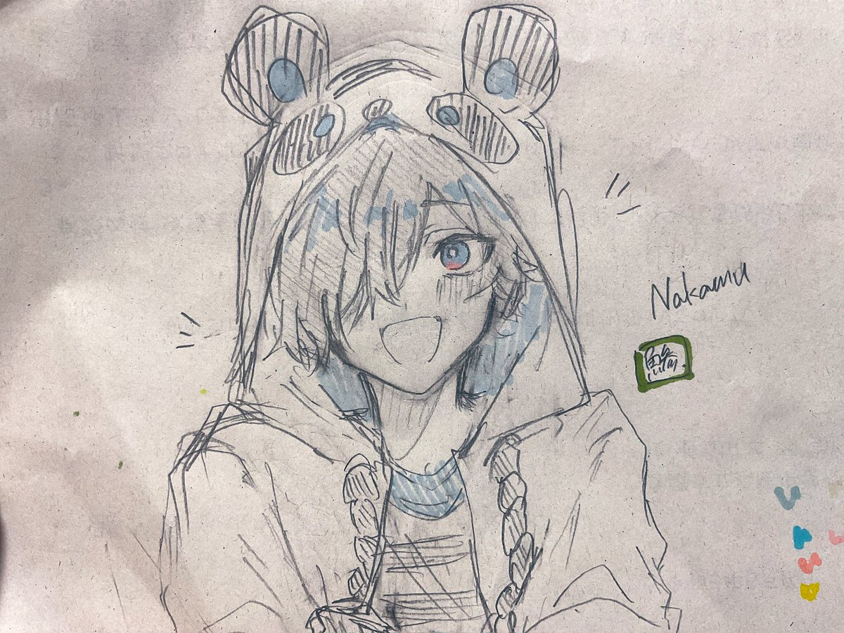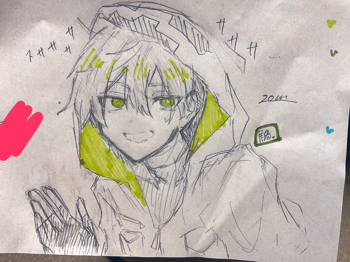 学校で書いて家のペンでちょっと塗った落書き。絵柄安定してきた、、?? #しろっぽ #wrwrdFA