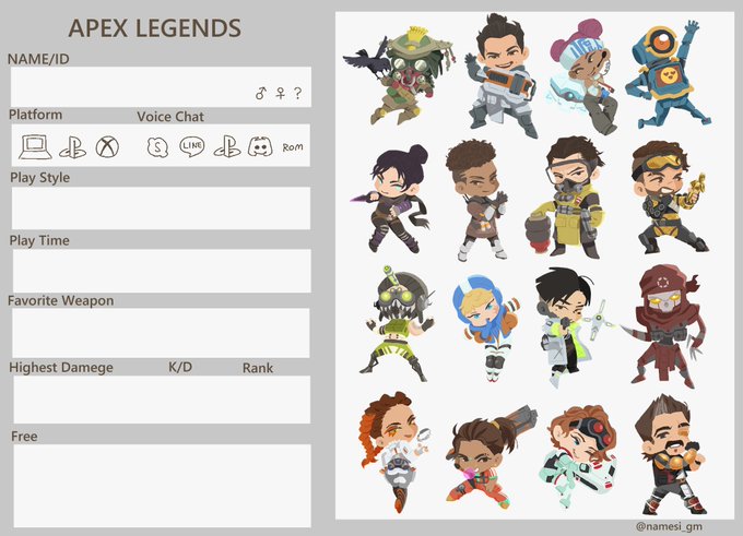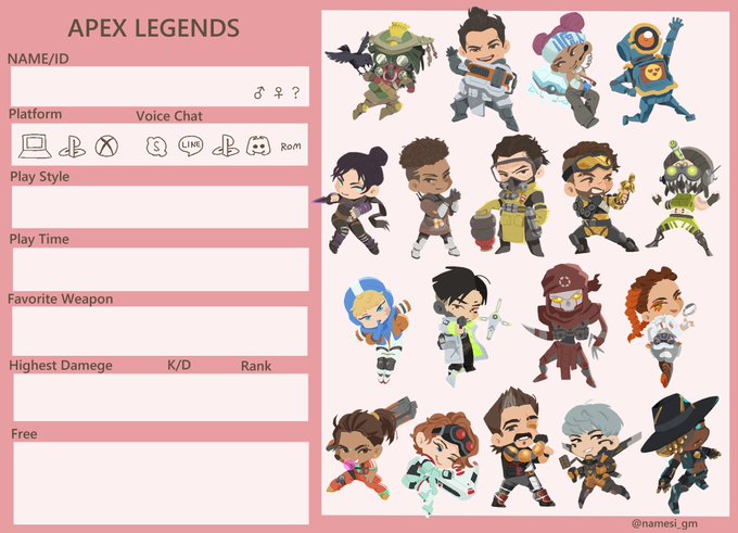 APEXシーズン12用に自己紹介カードをつくりました! ご自由に使ってください☺️ 使用報告不要です! 自作発言、二次配布等はNGです #Apex自己紹介カードテンプレ #Apex自己紹介カード #ApexLegends