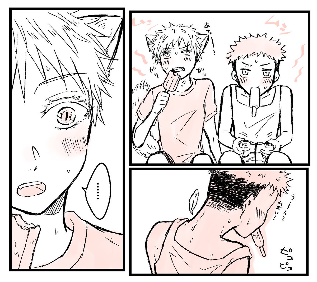 これはペiッiトとして獣人を飼う世界線で、いたどり家で飼われてる同い年くらいのショタ五悠らくがき(長い) この日からゆじを真っ直ぐ見れなくなるショタご🐱