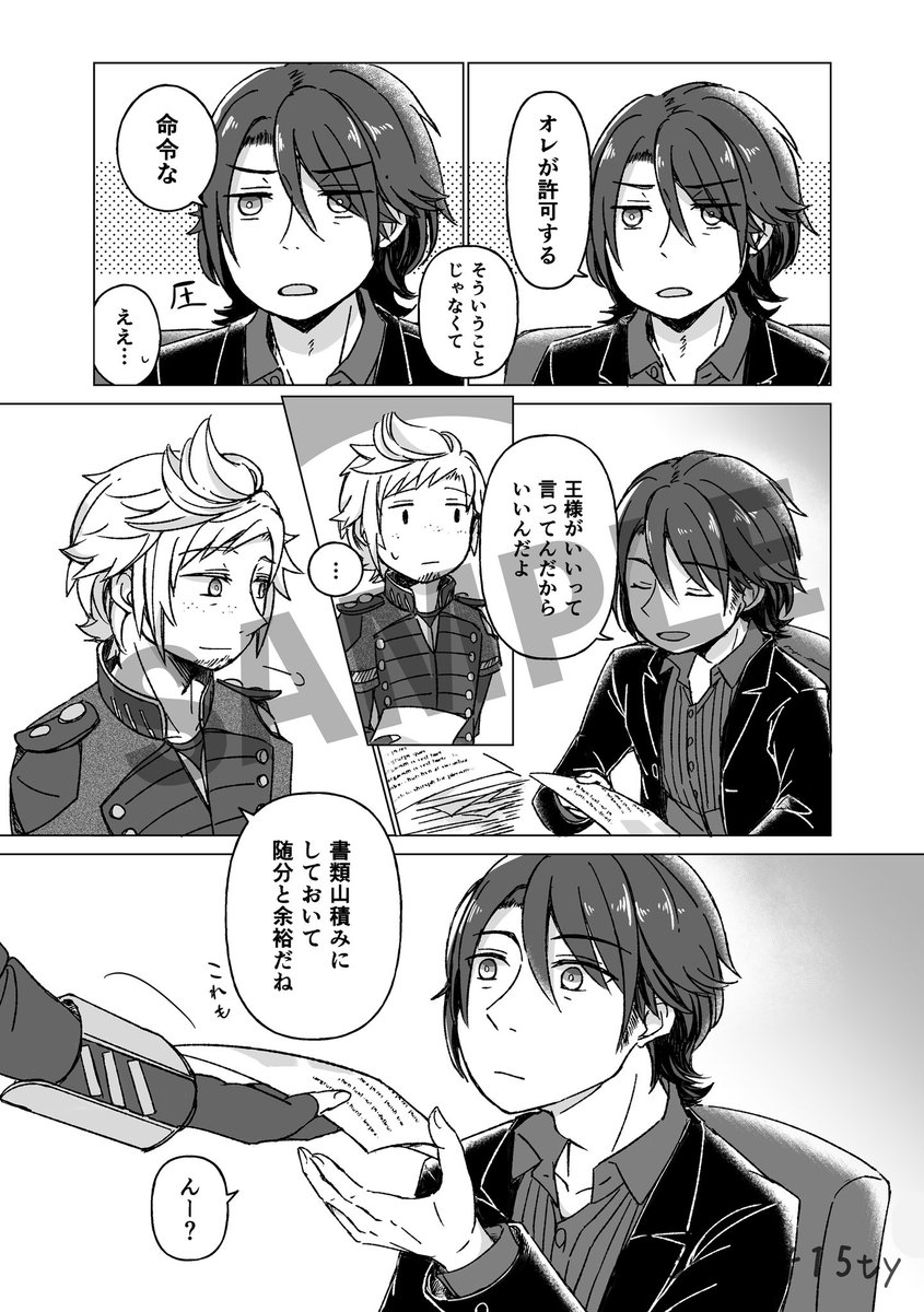 7 22 《8/27 TM内15プチオンリー新刊サンプル》 ノクプロ/A5/本文82P/全年齢向け ハッピー16章にてノクプロが城やお部屋で過ごす何気ない日常の短編集です☀️☕️(※サンプルは各画像で繋がっていません) 過去作の描き直し含む小ネタ数点+短編5つを入れています。 23/08/18 20:26